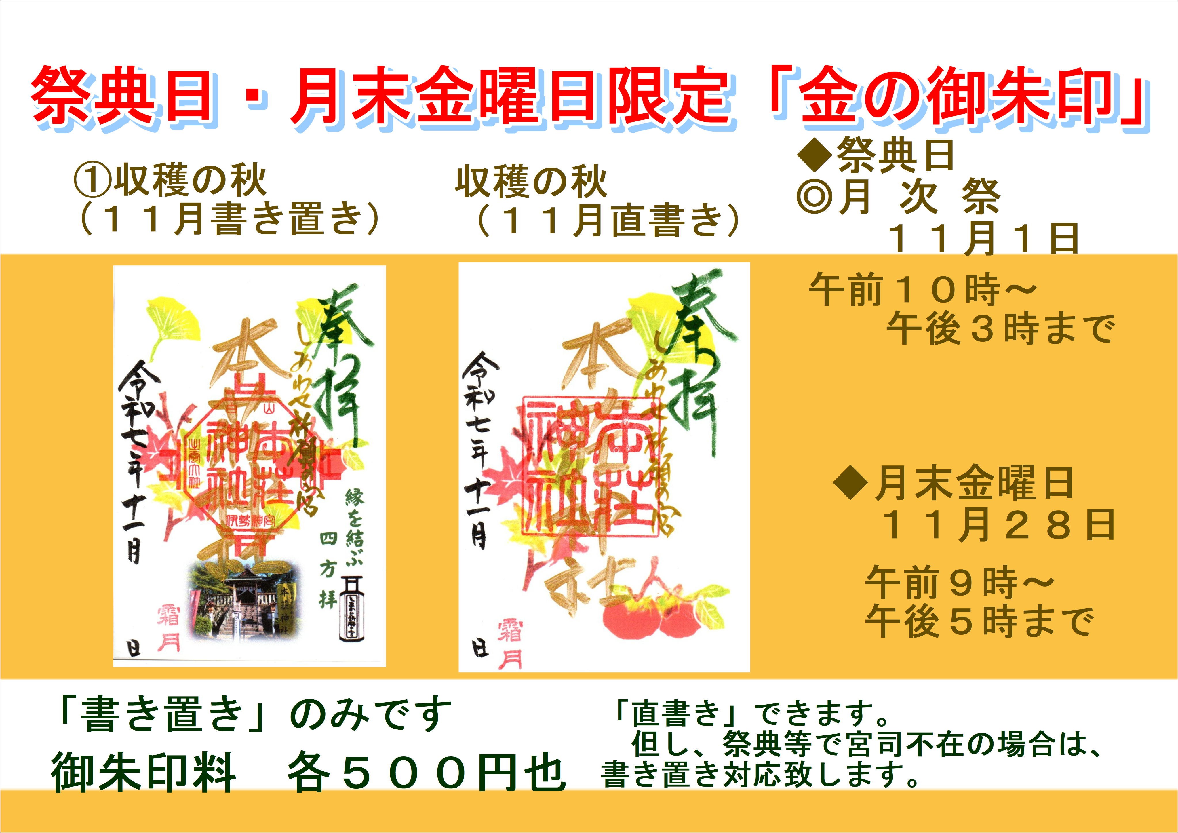 ○金の御朱印対応日