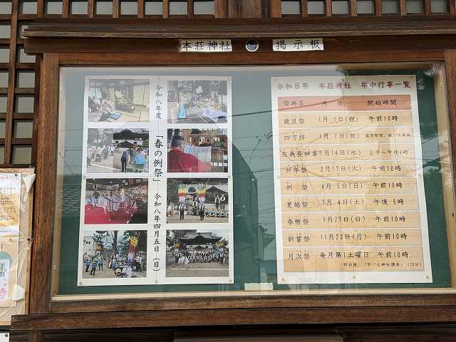 去る令和8年4月6日(月)本莊神社東側掲示板を更新いたしました。今回は、去る令和8年4月5日(日)午前10時から本莊神社幣殿で斎行されました本莊神社「春の例大祭」の様子です。参拝の折には、ご覧ください。