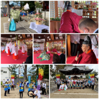 去る令和4年7月2日(土)午後5時から、令和4年度の本莊神社「夏越祭」が斎行されました。朝から氏子の皆さんや、保存会の皆さんが集まって、夏越祭の準備が行われ、子供会の皆さんが書いた行燈飾りや、茅の輪くぐりの準備、テント張など、炎天下の中で行われ、水分補給をして熱中症予防しながらの準備でした。