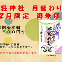 5日、6日、7日、12日、13日、14日、 19日、20日、21日、26日、27日、 28日 ※13日、20日は宮司不在につき「書き置き」 のみの対応です。 ◎神社の行事 ・12月6日 午前10時 月次祭 …